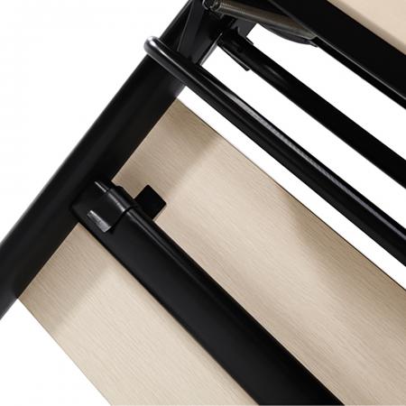• Flip-type table • Metal Under-structure powder-coated finish • MFC Laminated tabletop 25 mm thick w/ flat PVC Edge • With Front-board MFC laminated finish with flat PVC Edging • Plastic Grommet (Optional) • Size: 1200L x 600D x 750H mm |
