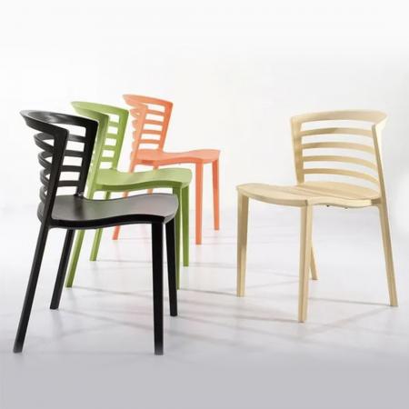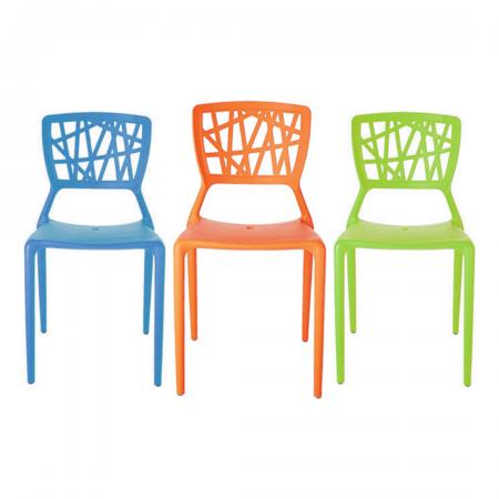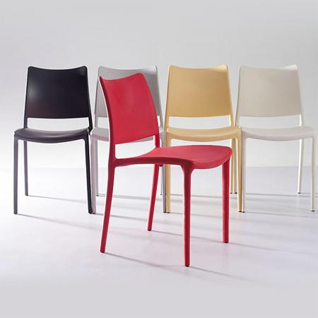 • Stackable • Polypropylene plastic seat rest and backrest • 4 legs with rubber footings |