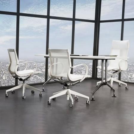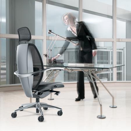 Key Features: • Special mechanism and height-adjustable gas piston that swivels and tilts • Sprung seat position with tension adjustment • Versatile nylon framework • Sturdy Y-shaped base incorporating the mechanical elements. No ugly handles, levers, knobs, cables or springs. • Available in leather or 2D mesh |