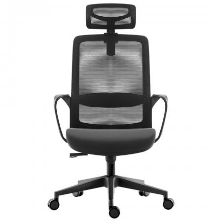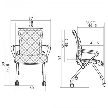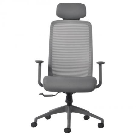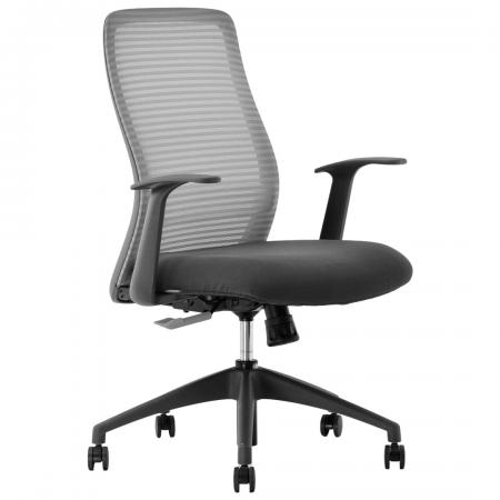 • Cushioned seat rest with fabric upholstery and mesh backrest • Back and seat module connection made of polished aluminum alloy that can support the backrest and seat-rest • Pneumatic seat height adjustment and synchronous mechanism • With fixed armrest • 5 pronged nylon base with caster |