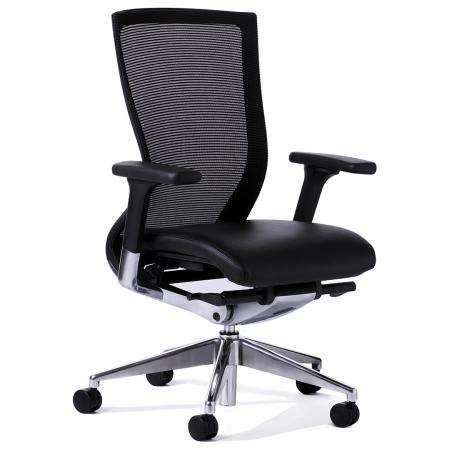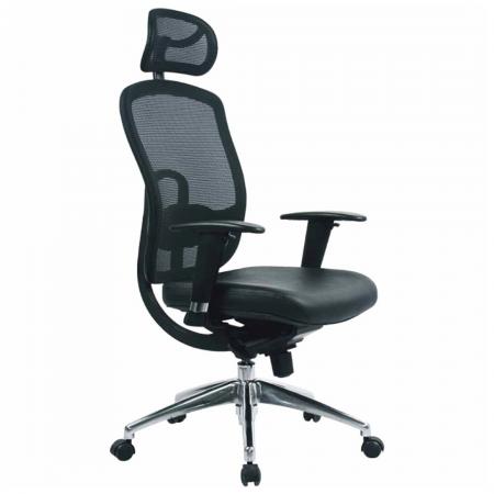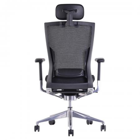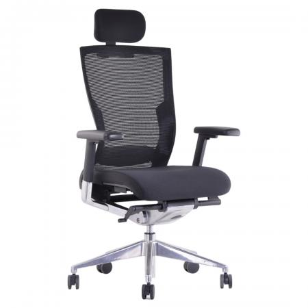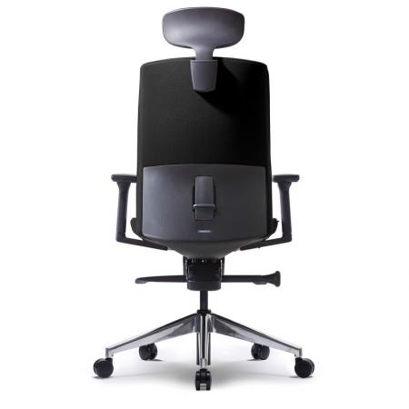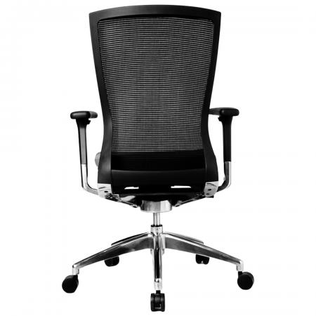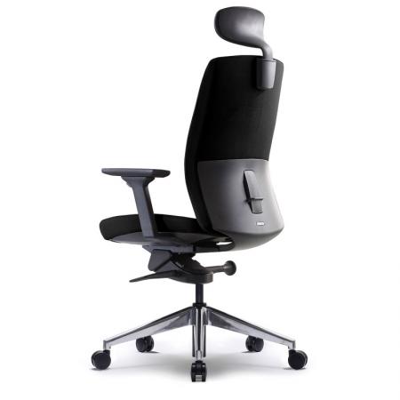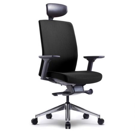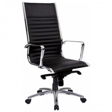 • High-back Aluminum Chair upholstered in soft Black man-made leather • With gas lift and KTG mechanism • With fixed armrest • 5 pronged aluminum base with caster |