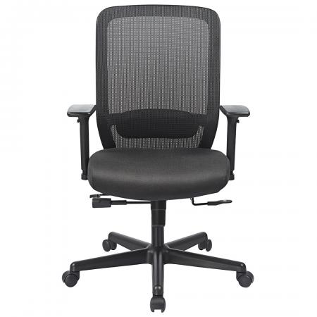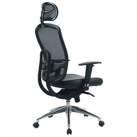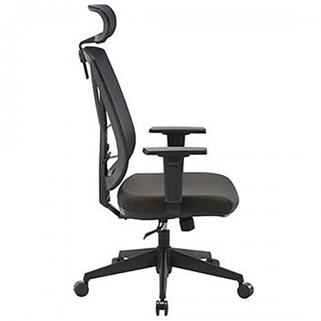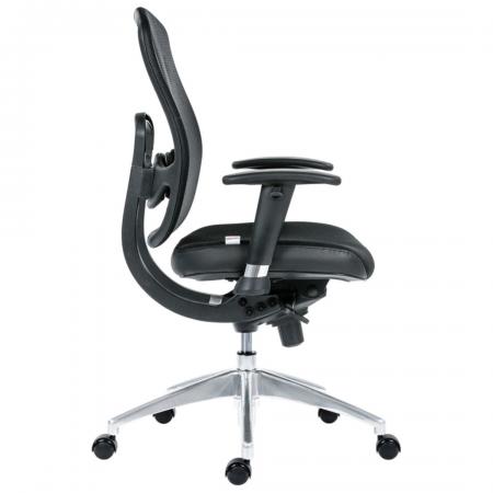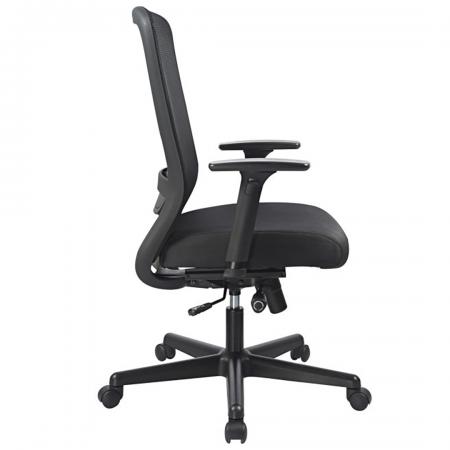 • Manager's chair with mesh back, padded seat rest, and leatherette upholstery in black color • Synchronous mechanism with three locking positions • Gas lift mechanism for adjusting the height of the seat • Adjustable lumbar support • Adjustable armrests in height and width • 5 prong stainless steel base with caster |