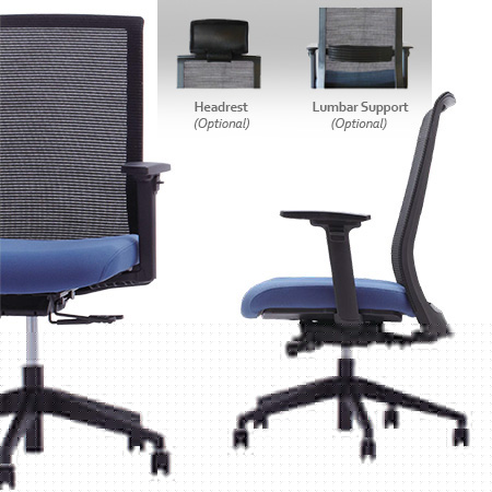 Key Features: • Headrest for neck and cranial support • Single lever control to operate main chair functions • Curved mesh backrest for lumbar support • Adjustable seat slide and seat height • Adjustable backrest height and tilt tension • Synchro tilt mechanism with infinite lock • Adjustable armrests height, angle and depth • GREENGUARD-certified, 97% recyclable |