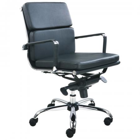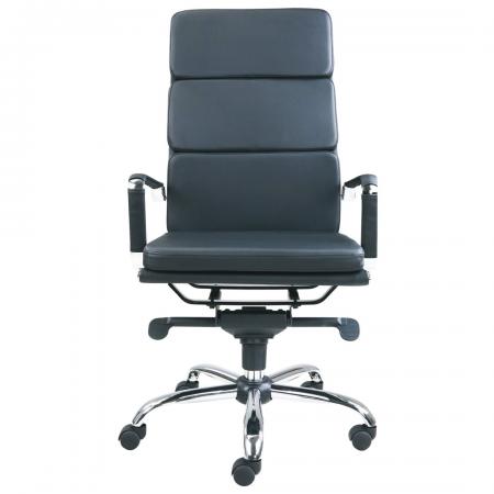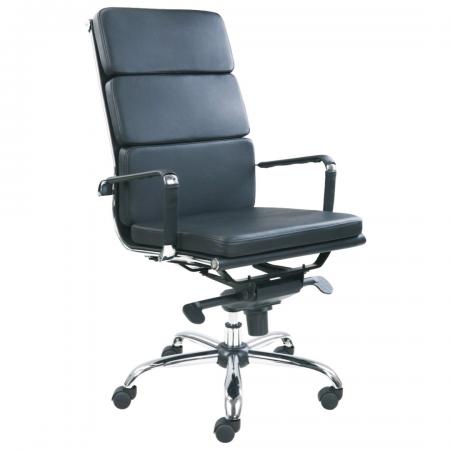 W80 Executive Chair High Back The padded and upholstered seat features a faux leather finish that can easily be wiped for multiple users and the chrome 5 star base with hooded casters allows easy manoeuvrability.