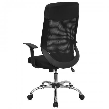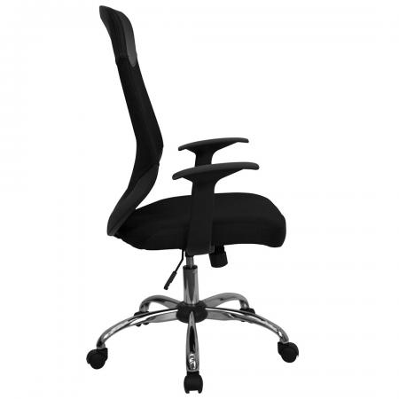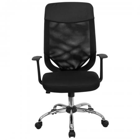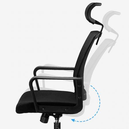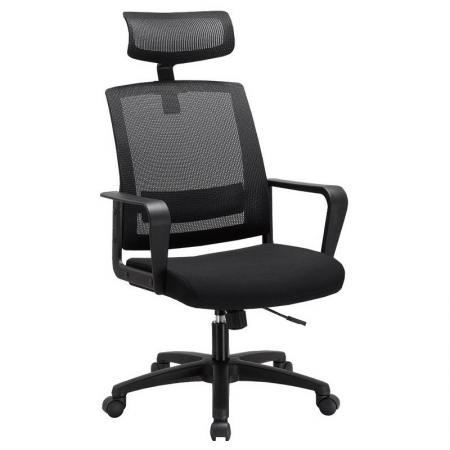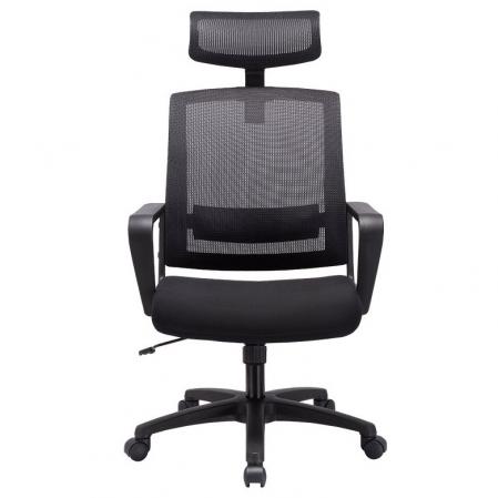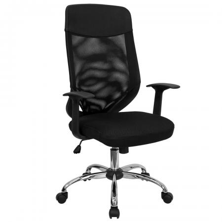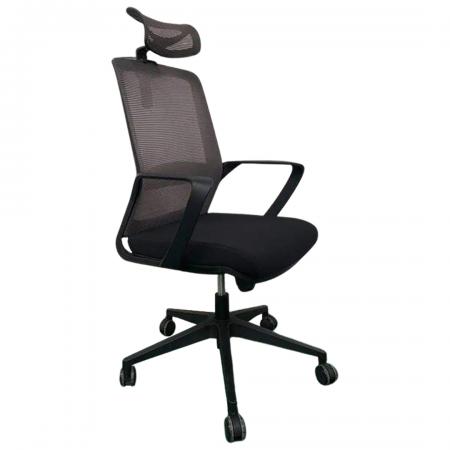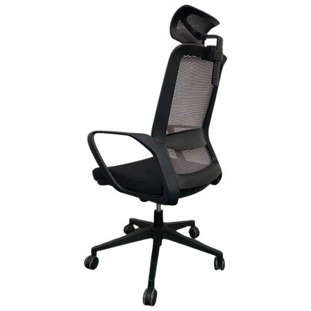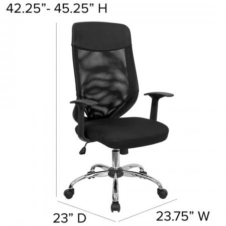 • Mesh Executive Office Chair • High Back Design • Mesh Back • Black Mesh Fabric Seat • Integrated Nylon Headrest • Locking Tilt Control • Tilt Tension Control • Pneumatic Seat Height Adjustment • Nylon T-Arms • Chrome Base • Dual Wheel Casters • Dimension: 23.75"W x 23"D x 42.25" - 45.25"H |