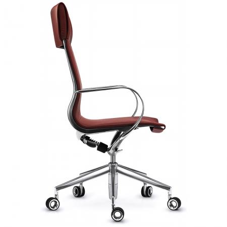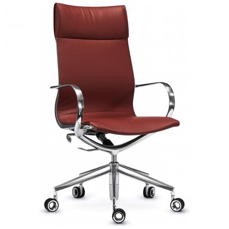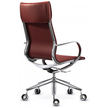 • Exquisite hand polished framework • Luxurious soft leather headrest • Special mechanism and height-adjustable gas piston that swivels and tilts • Sprung seat position with tension adjustment • Sturdy Y-shaped base incorporating the mechanical elements. No ugly handles, levers, knobs, cables or springs. • Polished 5-star base with uniquely designed hollow casters • Leather headrest • Available in leather upholstery, 2D or 3D mesh |