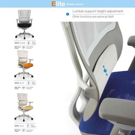 Nefil X-Elite w/o Headrest Mid Back The Nefil series provides customized comfort, allowing the user to adjust almost every aspect of the chair with ease using a patented single lever mechanism for easy intuitive adjustment and control.