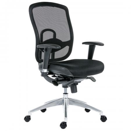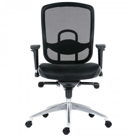 • Mesh back and fabric seat • Synchronized Mechanism with 3 locking position • Adjustable Seat Height / Armrest Height/ • Adjustable seat Pan depth • Quality casters in Hard Nylon or Soft Polyurethane • Adjustable Lumbar support • Aluminum support and aluminum foot base |