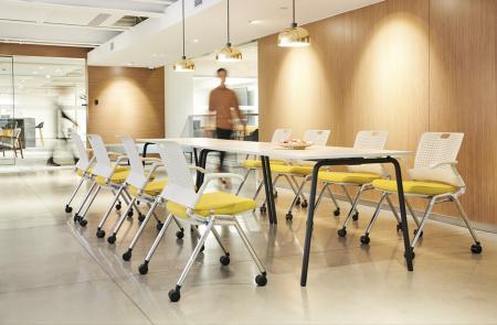 CF-350 Training Chair Training Chairs CF-350 is a highly versatile and comfortable four-legged chair on castors. It is distinguished by its mobility and universal suitability not only as a task and visitor chair but also as a stackable space-saving chair for conference venues or commercial uses.