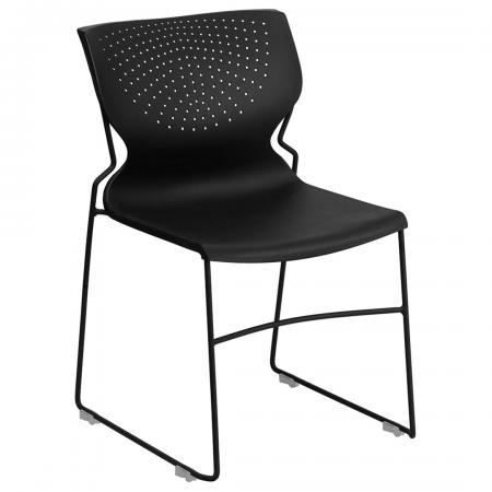 • Black plastic perforated back stack chair with steel frame • Multipurpose stack chair • Durable, easy to clean, and contemporary style stack chair • Ergonomically contoured design stack chair • Perforated plastic back allows air circulation • Comes with a supportive front cross brace • Black powder coated sled base frame with plastic ganging floor glides • Dimension: 31.75"H x 19.5"W x 22.75"D • Back Size: 15" H x 18" W • Seat: 17.25" H x 18" W x 16.5" D • Seat: 1" Thick • Leg: 17.25" H x 0.5" W • Leg space: 19.5" Long x 17" Wide • Weight Capacity: 661 lbs |