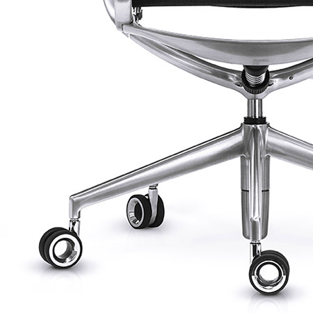 • Molded polyurethane foam cushions • Chair frame and base • Die-cast aluminum with fused plastic coating or polished aluminum finish • Nitrogen-charged gas cylinder for adjustable seat height • Coil spring in the self-adjusting recline mechanism • Elastomer spring in the pivoting backrest |